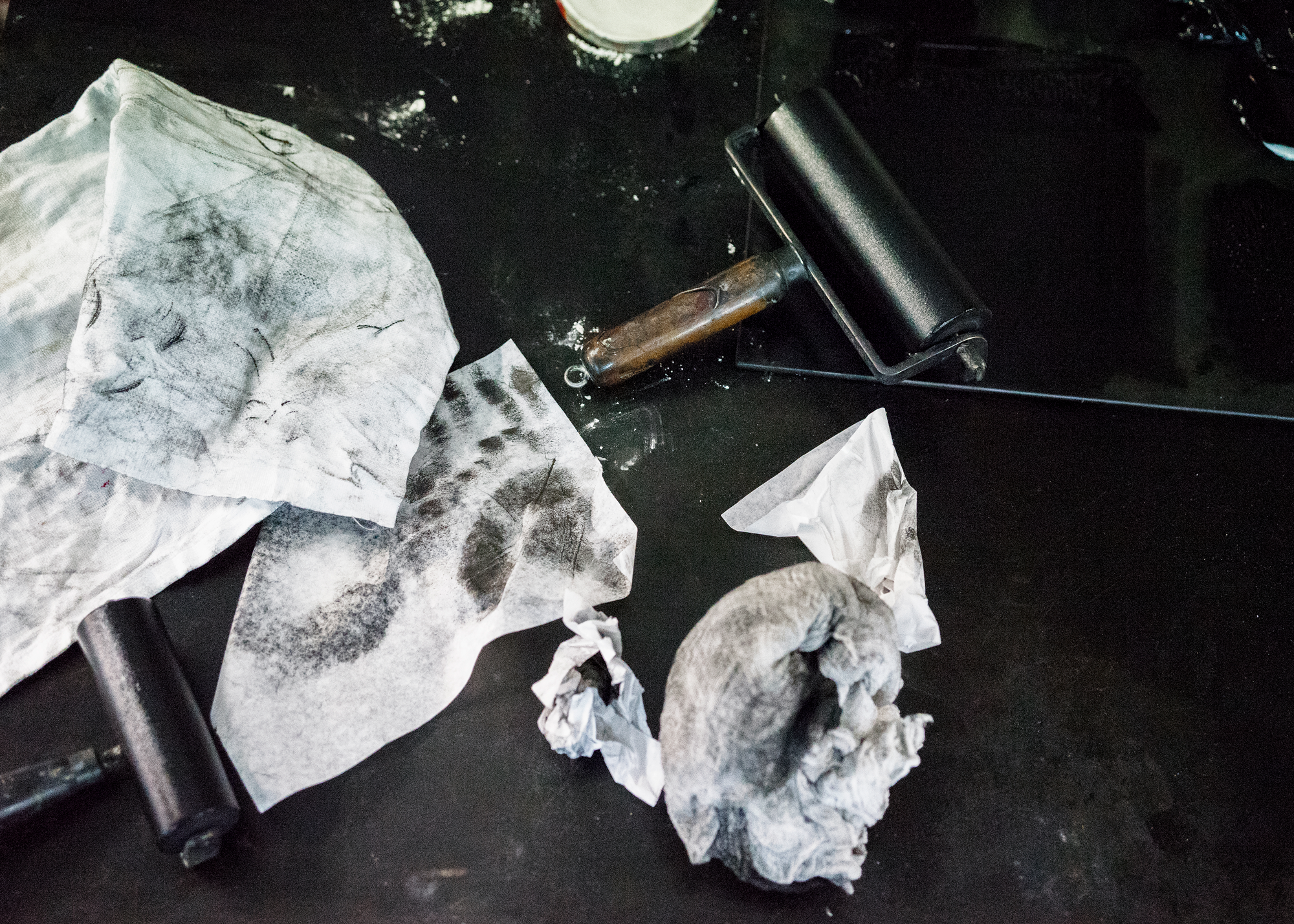 Photo: Lee Ufan producing Untitled (I), 2019 Drypoint etching on Japan paper in Atelier Woolworth, Photo by Claire Dorn