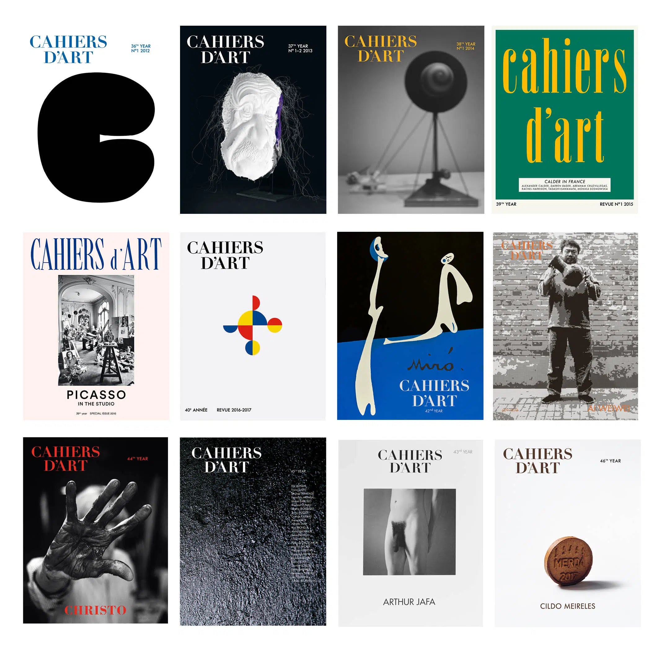 The new Cahiers d’Art preserves the spirit, the graphics, and the eclecticism of Zervos time. It presents contemporary artists such as Ellsworth Kelly, Rosemarie Trockel, Ai Weiwei, Arthur Jafa, and Christo, and some of Zervos’ favorite artists – Picasso, Miró, and Calder, among others. Cahiers d’Art works directly with the artists or their estates to create La Revue. La Revue is published in a standard and a limited edition, including a creation signed and numbered by the main featured artist.
